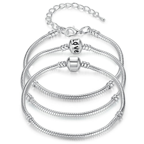 BAMOER 5 Style Silver Color LOVE Snake Chain Bracelet & Bangle 16CM-21CM Pulseras Lobster PA1104