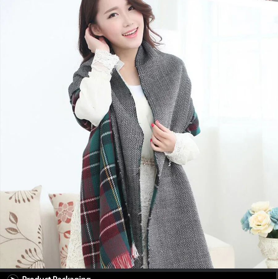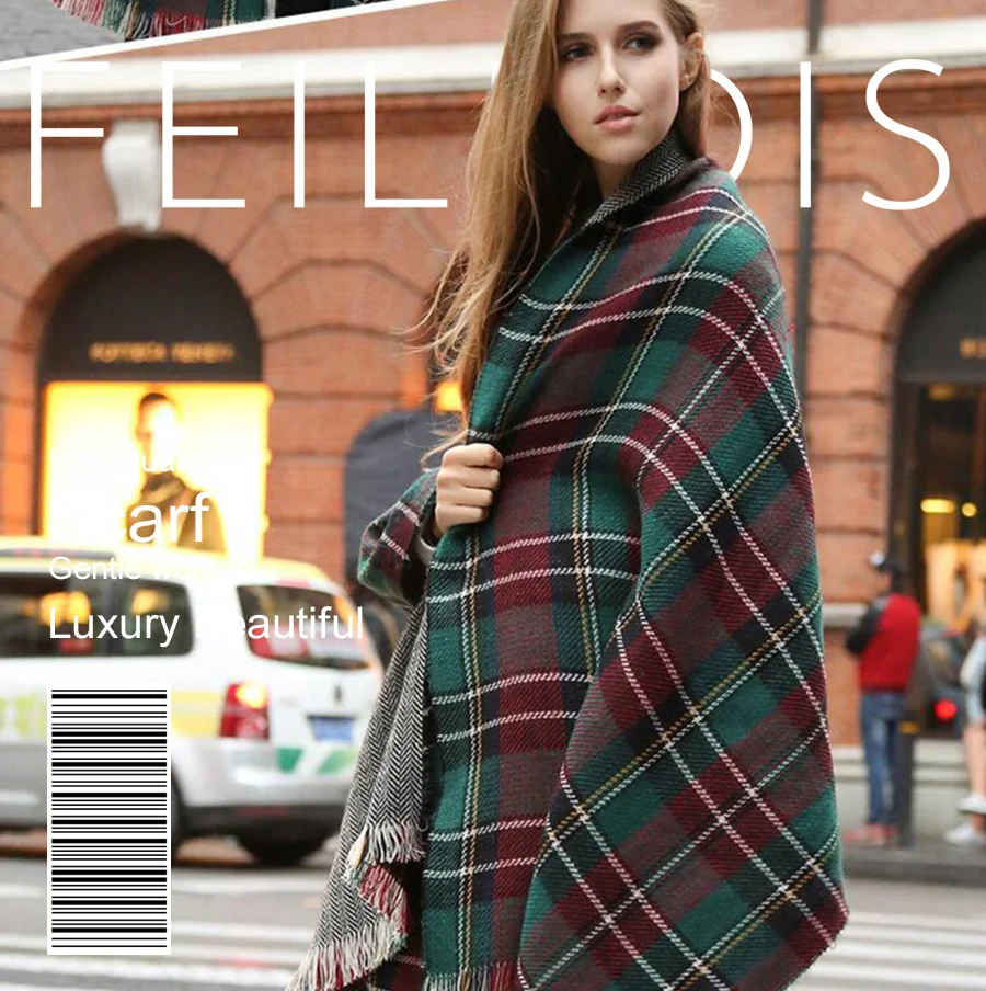 [FEILEDIS]Women Cashmere Scarves Long Wraps Scarf Autumn Scarf England Classic Plaid Scarve