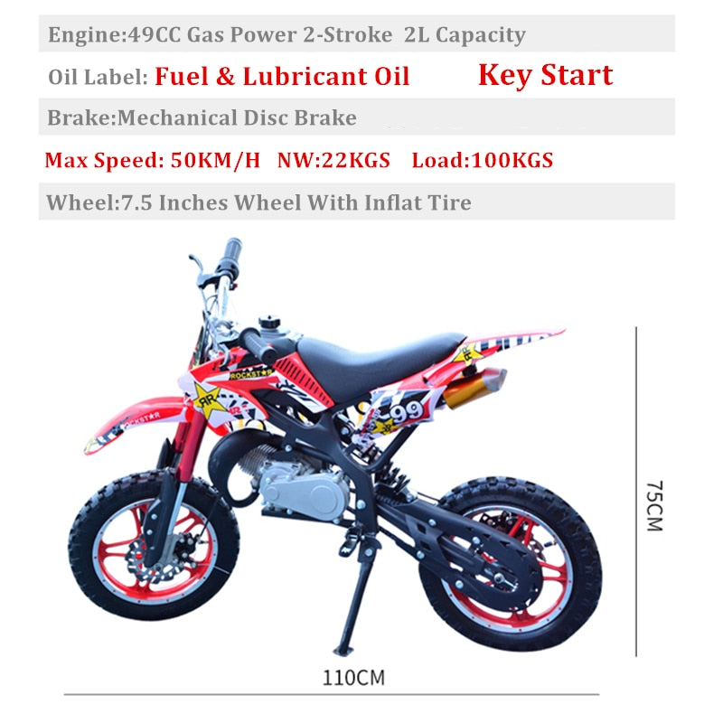ALWAYSME 49CC/50CC 2-Stroke Gasoline Power Kids Dirt Pit Bike, Kids Motorcycle