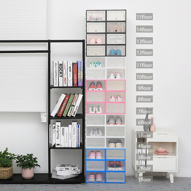 6pc Transparent shoe box storage shoe boxes thickened dustproof shoes organizer box can be superimposed combination shoe cabinet