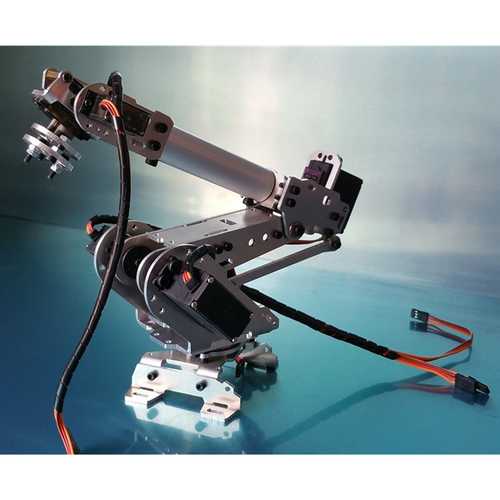 Descriptions:- Material: thickened hard aluminum alloy.- The item's design concept comes from ABB palletizing robot, the same principle structure, range of motion is greater than other similar arms.- The arm has four MG996R metal gear servos and two MG90S metal gear gear servos to ensure lasting power.- All the moving joints are using high quality bearings, better performance.- The base of arm uses full-steel bearing, which make the arm more stable.**Please know that what included are seperated parts, you need to install it by yourself.()Package included:1 x Six axis robot arm