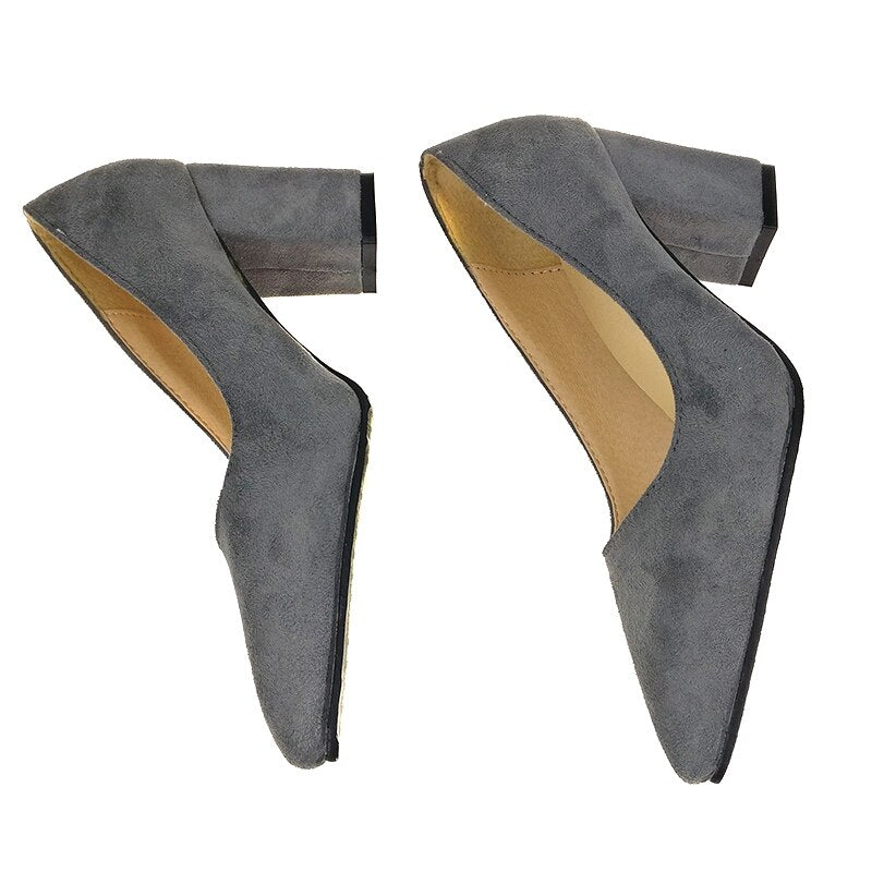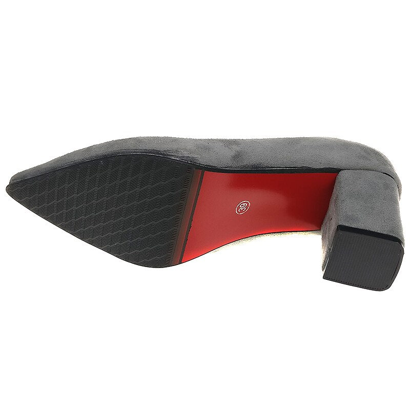 Aphixta Shoes Square Heel Women Pointed Toe Pumps Fashion Gray High Heels Flock Leather Black Party Shoes Plus Big size 47 48 50