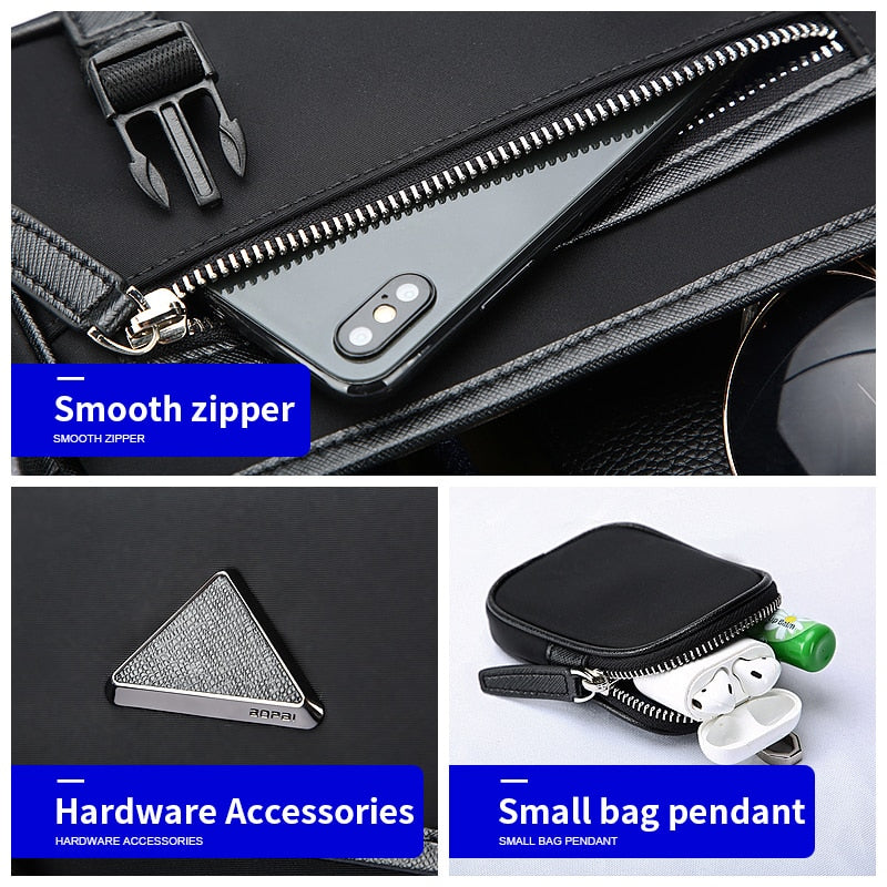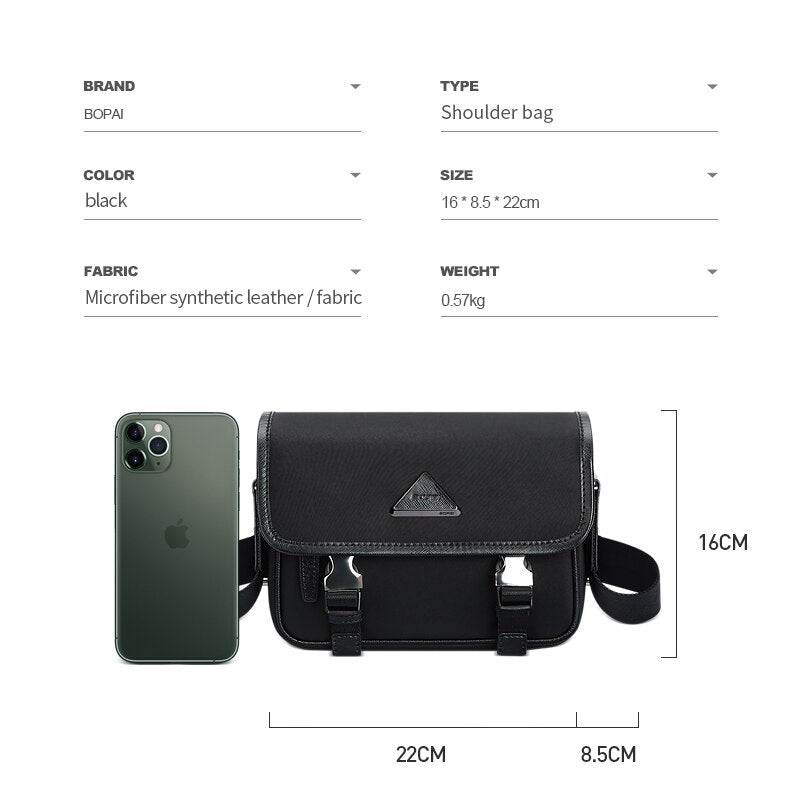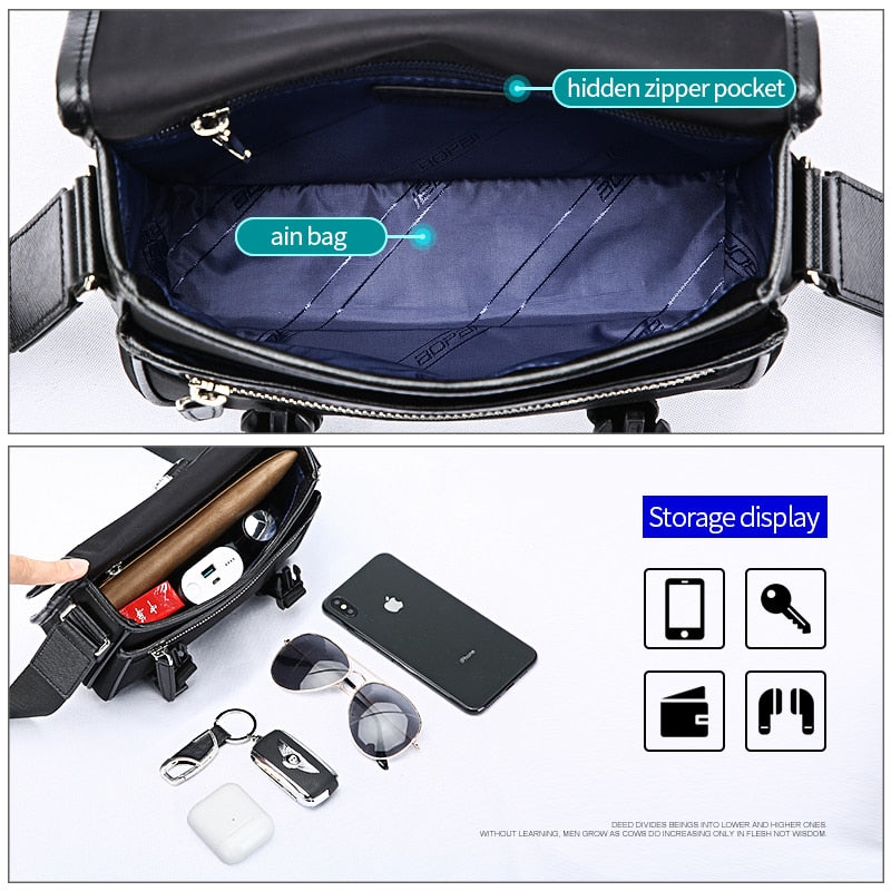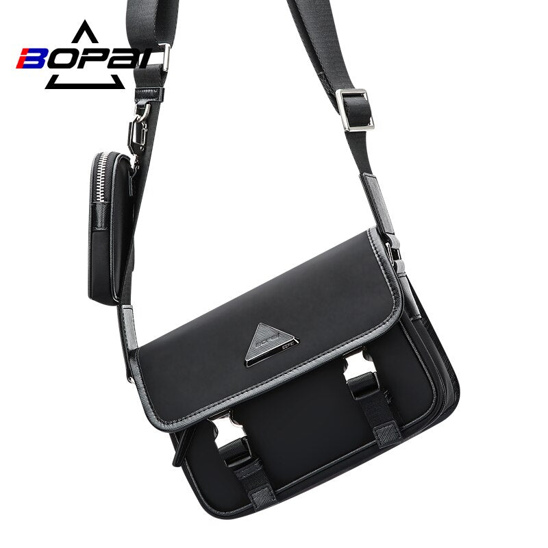 BOPAI New Casual Crossbody Bags Black Soft Small Briefcase Zipper Business Men Fashion High Quality Shoulder Bag For Travel