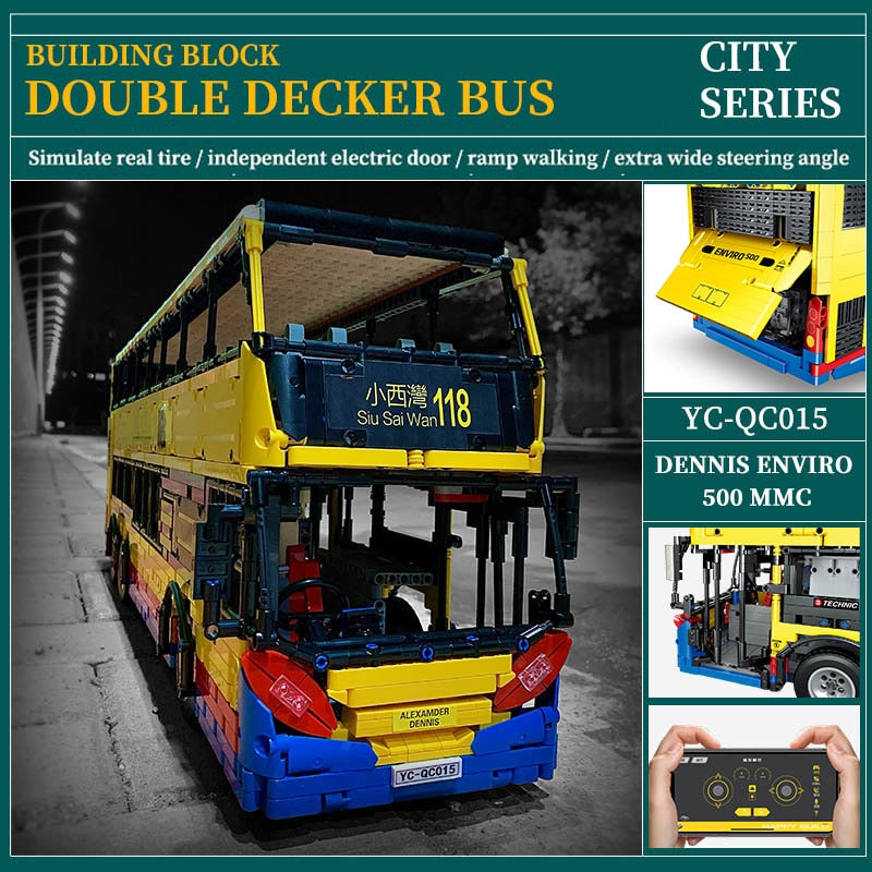 4314PCS YC-QC015 MOC Double Decker Bus Technolog Bricks With Remote Control Version Building Blocks Adult Gifts for Children