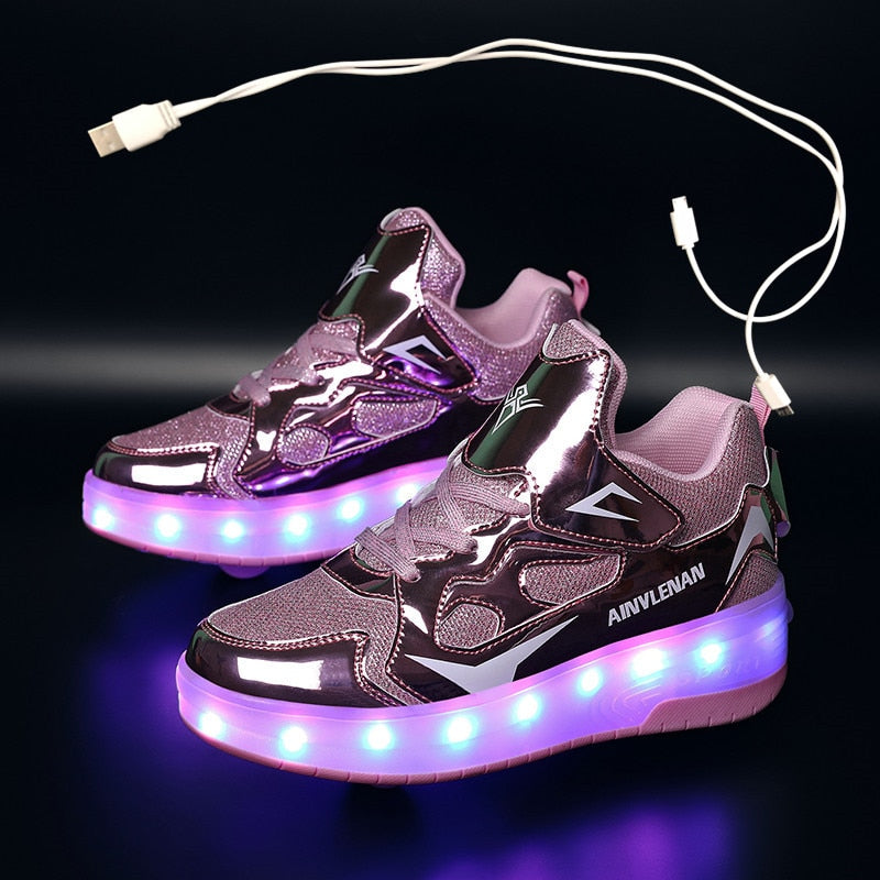 Children Two Wheels Luminous Glowing Sneakers Black Pink Red Led Light Roller Skate Shoes Kids Led Shoes Boys Girls USB Charging