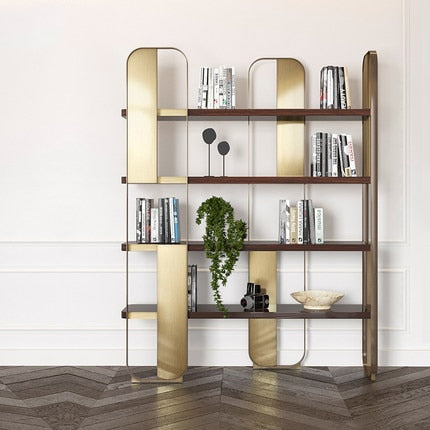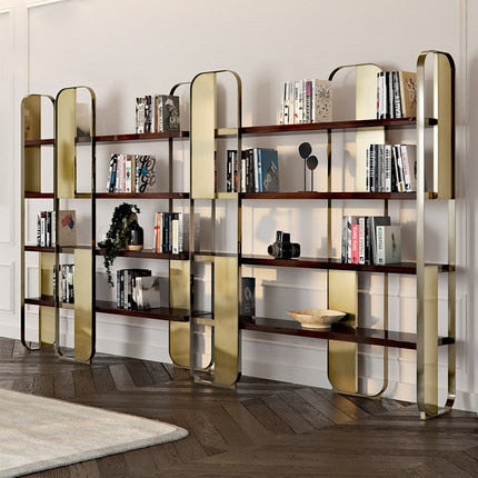 • 将图片加载到图库查看器,China modern creative design metal wooden bookshelf fashionable elegant shelf for studio study office