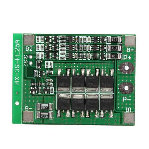 Description:Model: HX-3S-FL25A-ASize: about 56mm*45mm*1.2mmOver voltage range: 4.25~4.35V ± 0.05VOver discharge voltage range: 2.3~3.0V ± 0.05VMaximum operating current: 0~25AMaximum transient current: 34~40AQuiescent current: less than 30uAInternal resistance: less than 100MohmWorking temperature: -40℃ ~ +50℃Storage condition: -40℃ ~ +80℃Effective life: more than30000hShort circuit protection: Yes, delayed self recoveryNote:1. Strictly according to the diagram wiring: 0V(B-)3.7V(B1)7.4V(B2)11.1V(B+),Do not deliberately short circuit.2. After the wire is connected, needs to charge first, then have output.3. When the battery is connected in series with 3 groups ,please ensure that the voltage of each battery is the same. If not the same, please fill in each set of batteries and then use.4. Do not mix the good battery and the battery.5. It will be better the capacity of the battery internal resistance is closer.Package included:1 x Battery Protection Board